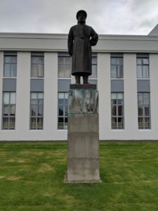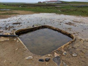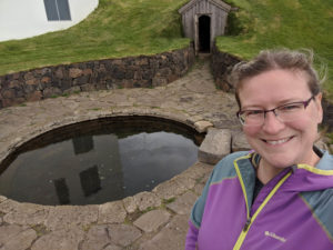The first location was just around the corner from where we spent the night, and checking google maps and satellite views I knew exactly where we had to go. We found the parking area behind a local church and saw the statue of Snorri Sturluson, an Icelandic poet who actually used this hot pot for himself. As we rounded the corner of another building, the hot pot was in clear site! No one was around and I thought at the time we were in luck. It wasn’t until we got closer that there were signs posted that this was a non-bathing hot pot 🙁 NOOOOO…. Oh well, at least we did something that was considered a cultural/historical tourist location.