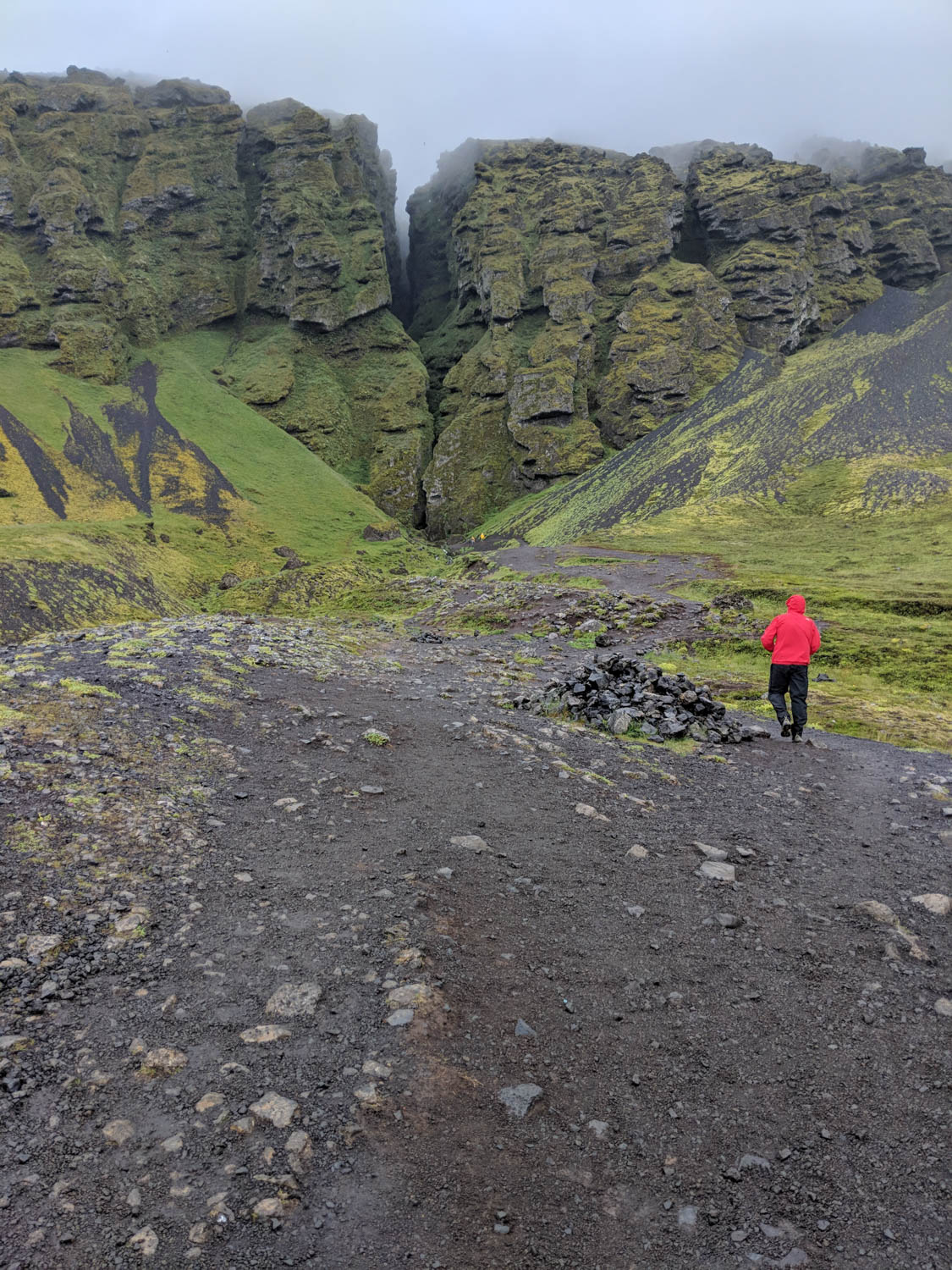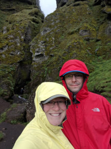 Our next stop was one of these random “Hey, look, there are people stopped in a parking area next to something that looks cool” location. This happened a number of times during our trip and we have never been disappointed. We were greeted by the sounds of water and a cliff that looked as though there were faces carved into it. On the signage which described the attraction, we learned that this is where Bárðar, a half-man half-troll used to live with his voluptuous daughters. The story continues that his brother also lived there with his two sons. One of the sons played a trick on one of the daughters sending her to Greenland on an iceberg. This lead to Bárðar killing the two boys and he retreated into the canyon and glacier never to be seen again.