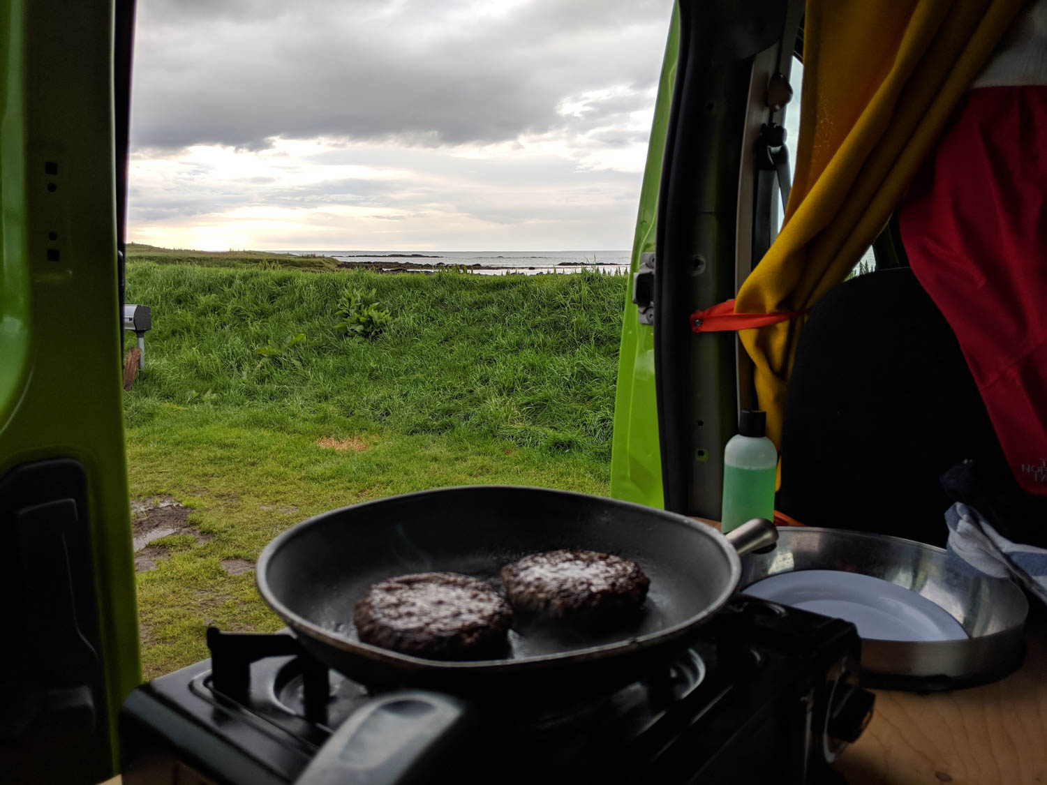 We drive to Akranes, quickly found the campground, parked the camper van and cooked our supper. We were both happy to have our spot for the night. Much to our surprise, our neighbors were a couple we had seen at the campground the night before. It was nice to chat with some other travelers about their journeys as well, even though we sometimes had a hard time understanding each other. They were from France and had taken the ferry to Iceland, driving and camping in their own van. It looked like a tiny space for the two of them, but they said it was quite comfortable.