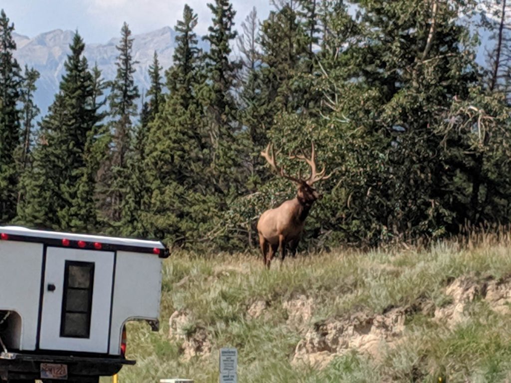 Along the road to Jasper we came across some wildlife. Please be careful when sightseeing and getting pictures of big animals. There were a few people a little too close to the elk that was foraging on the grass. We were able to give Hayden a little lesson on ethics of animal watching. He knew that those people were not being safe and could seriously get harmed.
