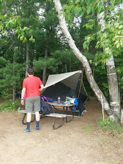 Nothing can beat the beautiful sunsets while camping!  With the sun down, the mosquitoes came out in full force. We decided that our fire was done, and we headed to bed. The next morning the mosquitoes were out in full force again, and we had to resort to our bug jackets for the first time this weekend.  Yes, the shenanigans continue!