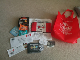 Goodie bag from the event! Not pictured is the flashlight Hayden got from Paddle In!