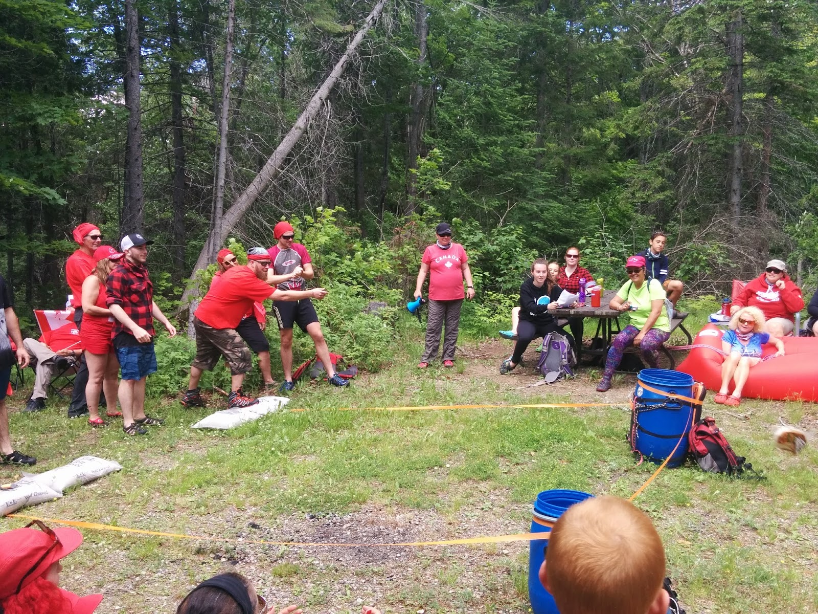 It was then time to move up to the picnic area for the next set of games. Again we cheered for Red or White, and I stuck strong to the Red Team, however my son went for White and it was quite the laugh to see mom and son argue over which team to cheer for.  This game involved tossing items into a bear barrel.  This time the teams ended with a tie, and volunteers were called upon from the audience to try to help break the tie. I, of course, shot my hand up fast!  I love these kinds of things, and it is just so much fun to participate in silly games.  I was up for the Red Team, but alas, I missed both items and the other team pulled ahead.  I went back to watching the rest of the games continue.