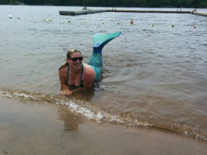 Once we hit the beach, the SUP instructor Holly had brought a bunch of mermaid tails for these lovely women to try.  This was an opportunity I wasn’t going to pass on.  She quickly found me a tail, which matched my swimsuit perfectly, and I got help squeezing my feet into the hard section that formed the bottom of the tail. I went for a few laps in the water and had fun posing for some pictures.
