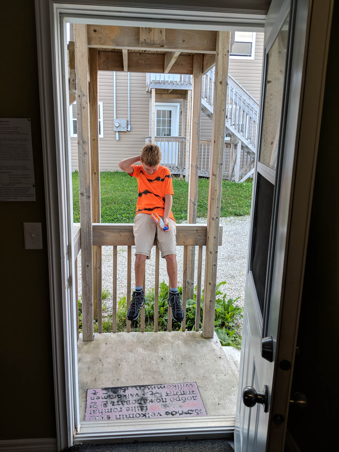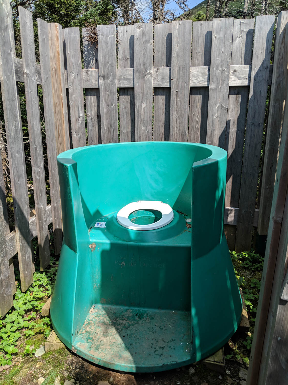 Near the bottom of the mail trail, there were a couple of benches appropriately placed for a pit stop. Luckily there was also a bathroom as we all needed it. These are not like your bathrooms that you find here in Ontario. These have a fence like surround and a plastic “throne” to sit on.