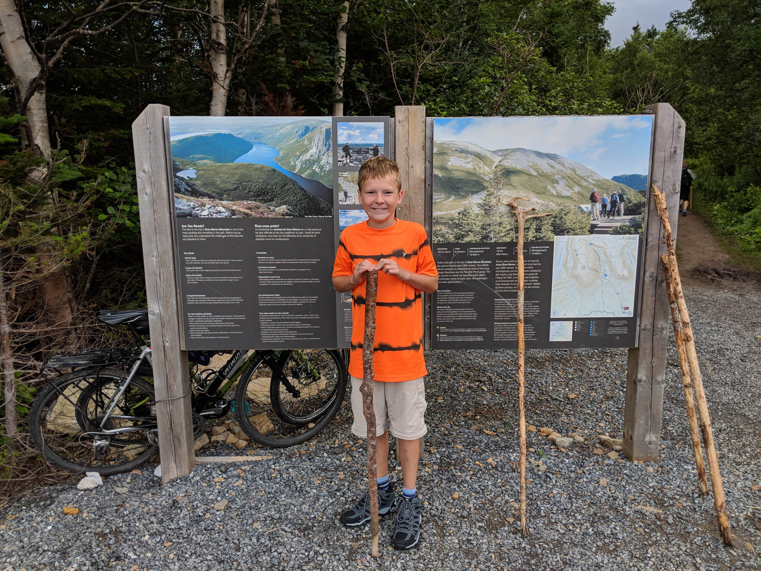 We have been gearing Hayden up for this hike for a while, trying to explain its magnitude. We have completed some pretty difficult hikes in the past, such as Cascade Mountain last Thanksgiving in the Adirondacks (one of the 46 peaks) as well as hiking Little Slide Lake loop in Frontenac Park. This one would be pushing his limits and ours to be honest. As we get…. older…. we are both finding that our knees are having some issues with the many ups and downs of hiking these big trails, where hiking poles would be useful.