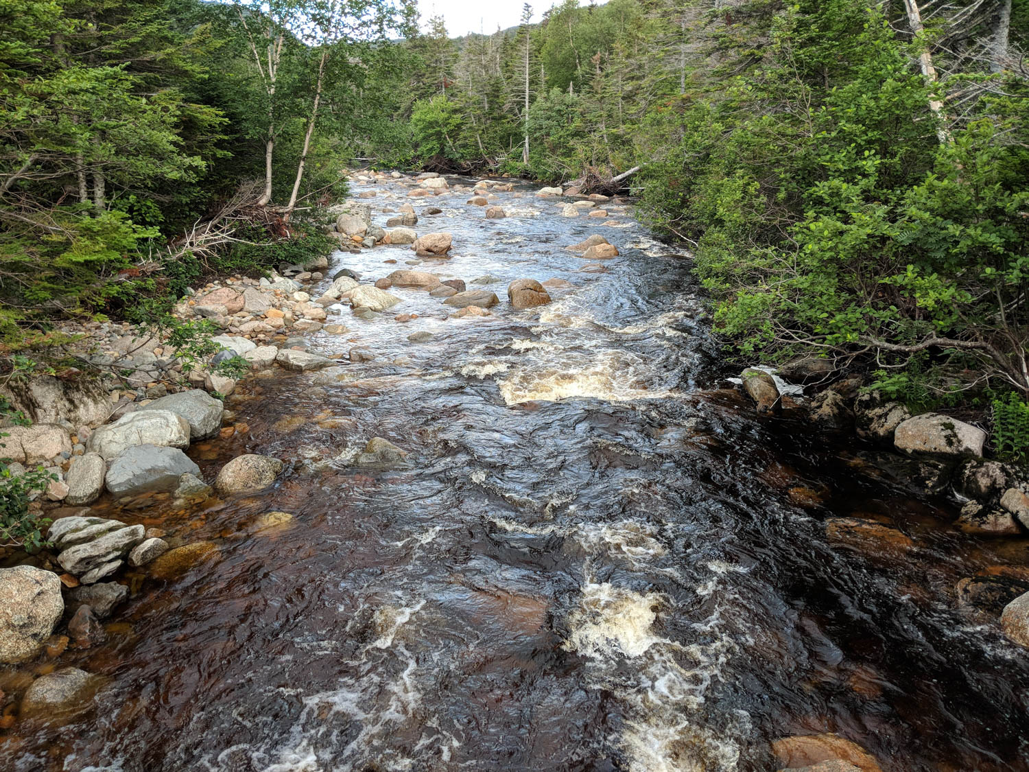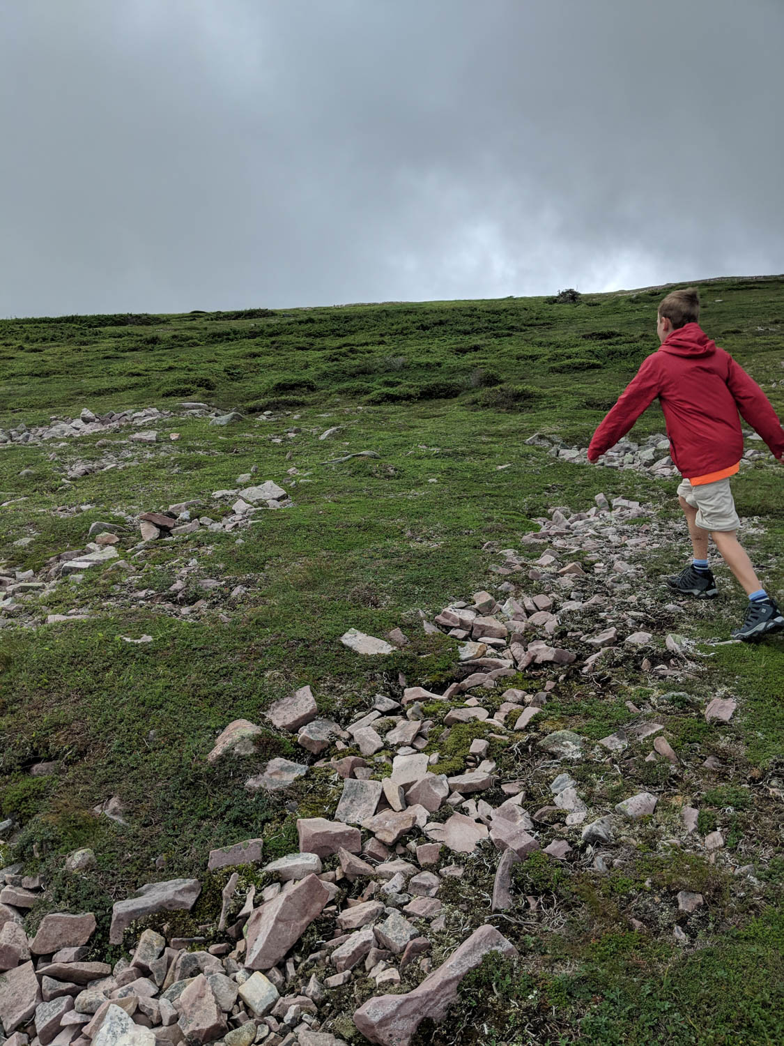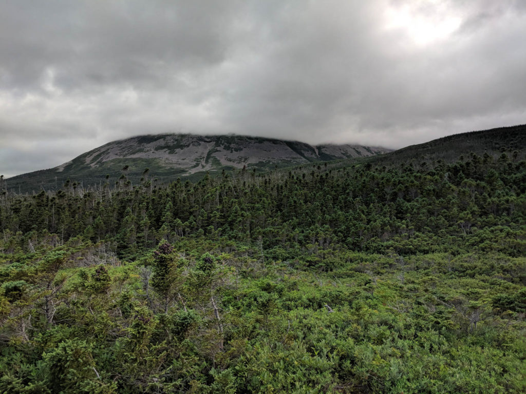 The first section of this trail meandered through the forest for a few kilometers until you reach the base of Gros Morne. There are sections of this trail where you get a glimpse of the mountain far in the distance. We were heading there, it just seemed like it took forever. Many of the conversations that morning was Hayden figuring out ways to speed up this process, like suggesting building a road, a pulley system, or just something to get us to the base faster. It’s amazing just what he thinks up while on our hikes.