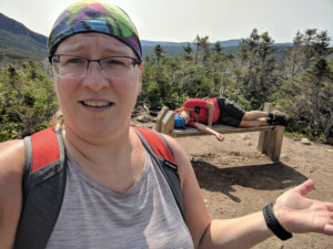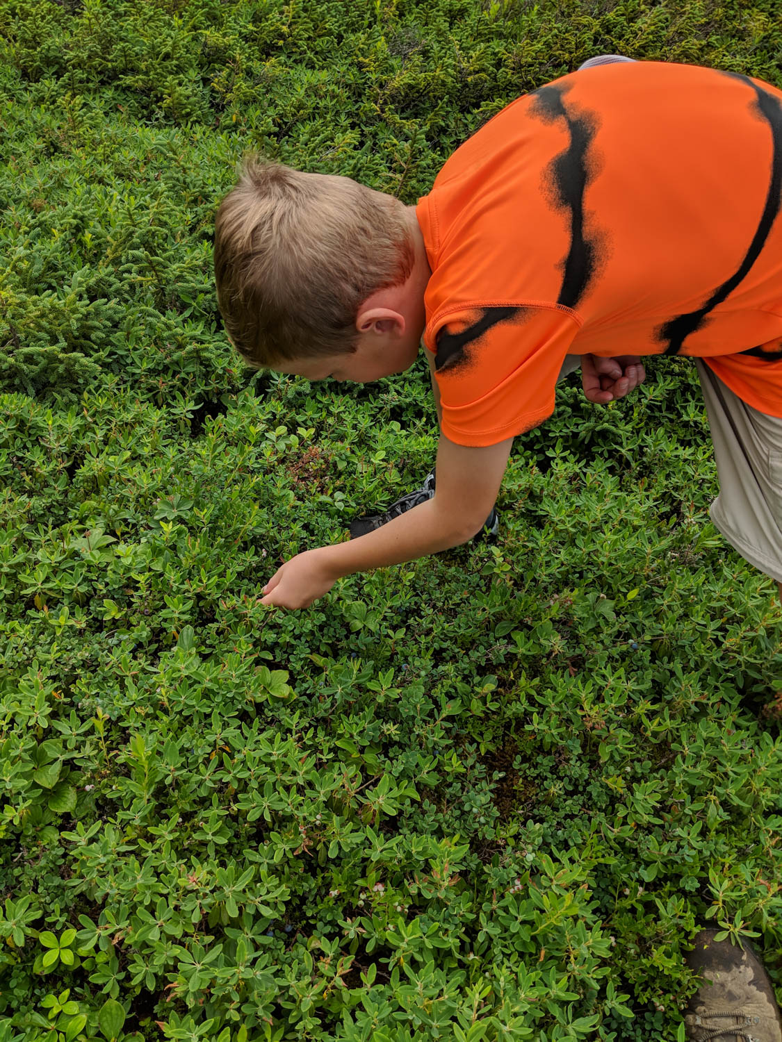 There is an advantage of hiking trails in Newfoundland in August, and that is finding blueberries along the trail side. YUMMY! Hayden and I both had to have a small sampling 🙂
