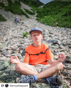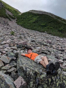 We informed Hayden that this section was going to be the trickiest part. The rocks are sheared granite and can be very slippery and difficult to climb. Knowing he loves to climb rocks really did help him at this part. He even found it funny to stop, relax and find some zen on the huge slabs that were part way up the gulch. This was both amusing to us and other hikers watching him. Always a goof.