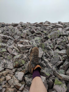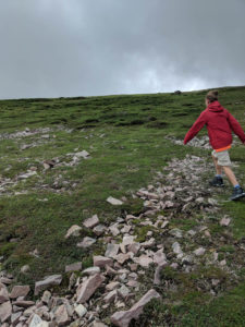 While on the summit we took shelter from the wind in a man made rock shelter. There must have been about 10-15 of these build at the top. Each shelter was situated with the wall backing onto the prevailing winds. Hikers needed a spot to sit and recoup and these seemed to provide that. We even took some rocks from the surrounding area and made the shelter we were using a little better.