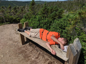 While stopped, the boys decided that it would be time to take a small nap on the benches. This also brings back memories of our Spout hike. With some encouragement, we headed back down the trail and eventually to our car.