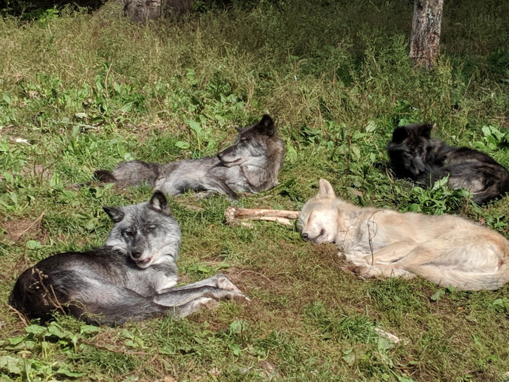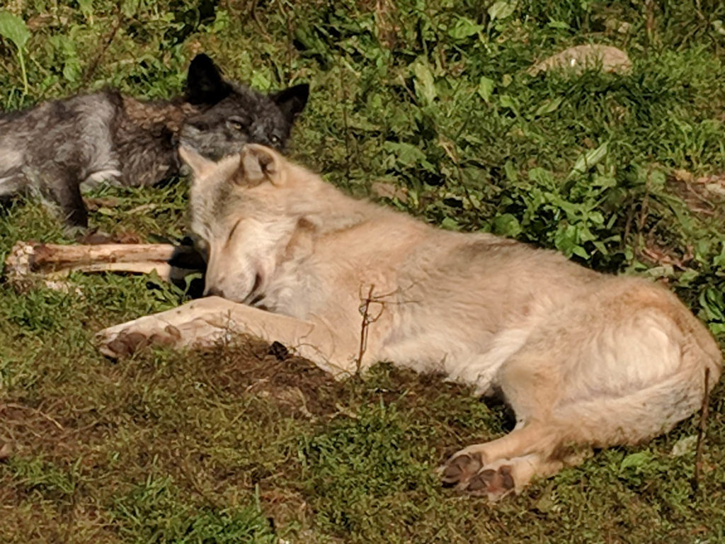 We were in luck! When we parked and paid for our entrance to the center, the front desk told us that all 8 wolves were in the viewing area!  We just sat quietly and watched as they slumbered the afternoon away, moving from one sunny spot to another.  We really could have stayed much longer, but since we had just finished a trip and had a bit of a drive before getting back home, we had to say good bye to these lovely creatures and get going.