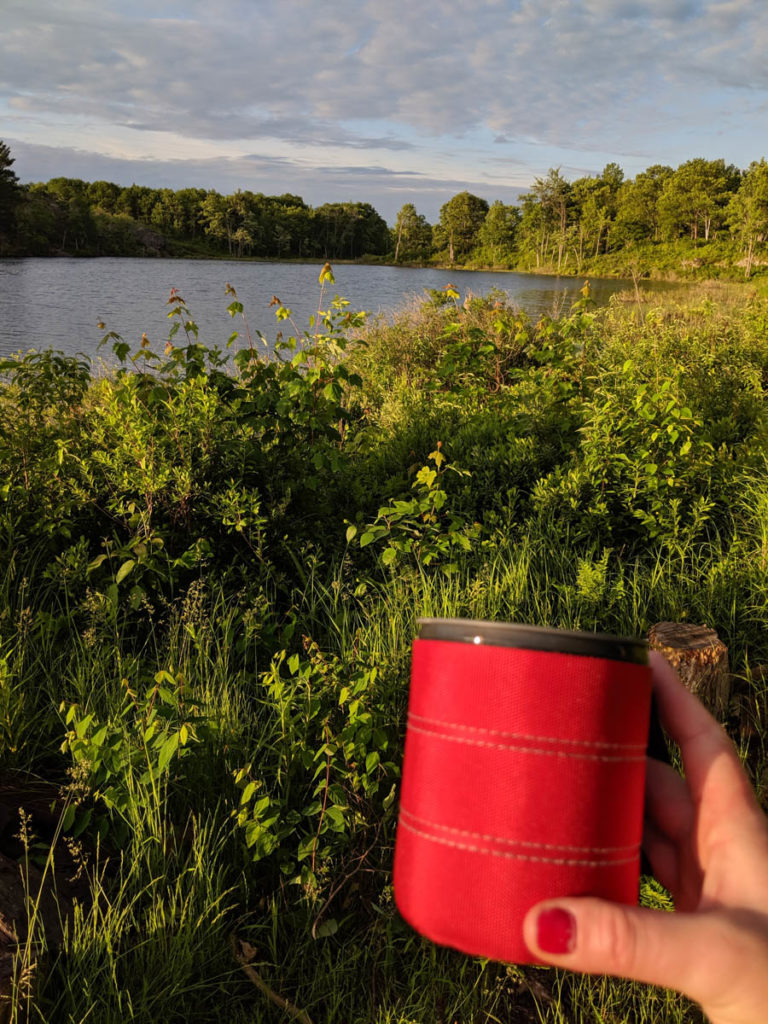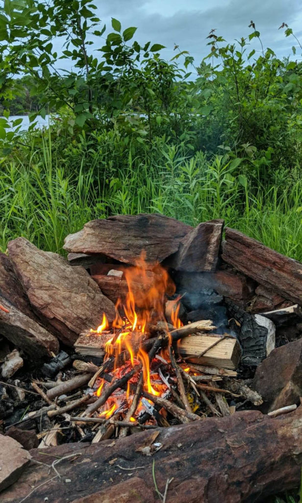 After my scare with the ticks, I decided to spend as little time as possible up in the back section of the site where all the tall grass and shrubs were located. Instead, I stayed by the fire wearing my long pants (tucked into my socks) and my sweater. The wind hitting the site was actually keeping most of the mosquitos away, and I sat by the fire for the remainder of the evening listening to the sounds of the lake.