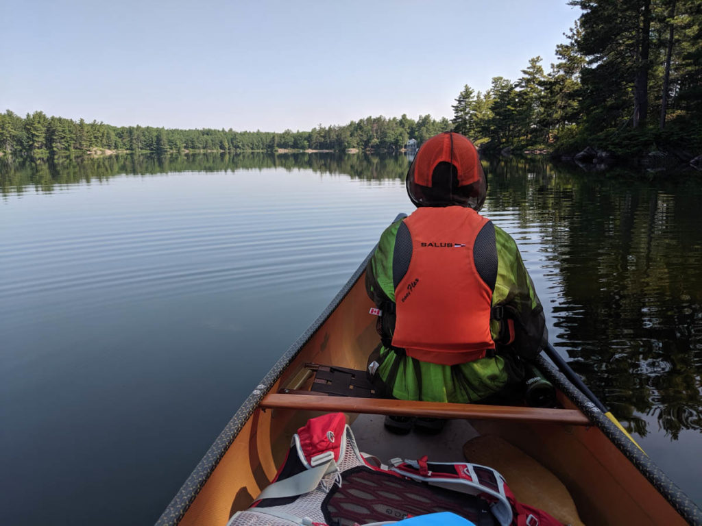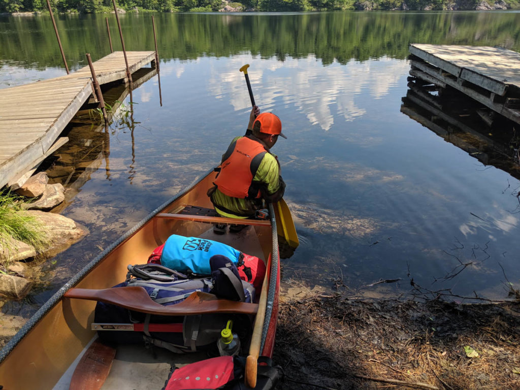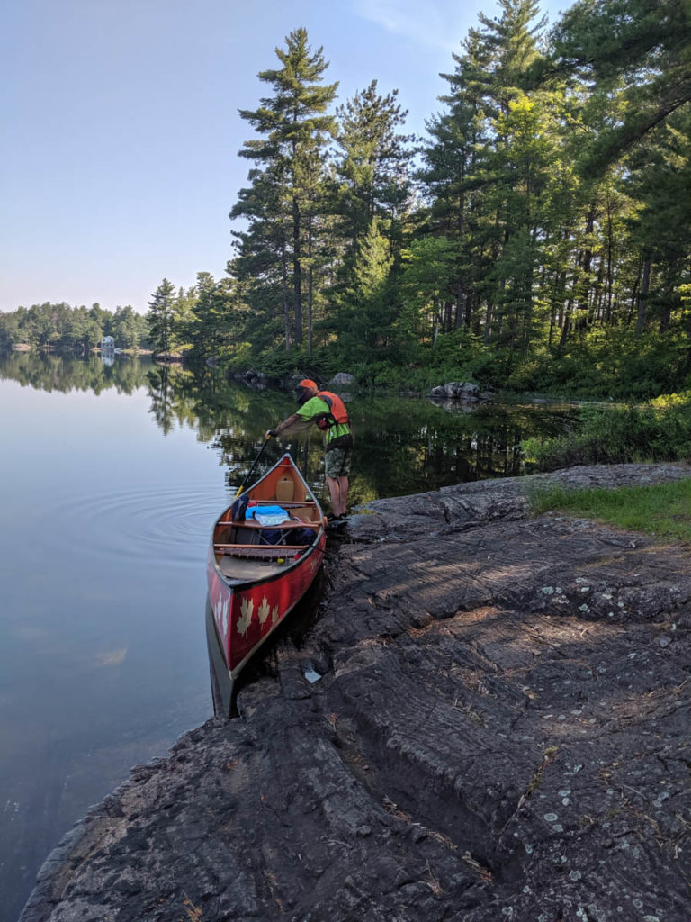 Along the portage we encountered an interesting situation. The gentlemen I was chatting with told me that there was an elderly man who apparently had collapsed on the portage. So as we made our way down the path, I kept an eye out for him and found him walking back to get the remainder of his gear. He only said ‘hi’ and looked down and continued on his way. At the other end, he appeared again, this time with the couple, but no gear. It was apparent that the gentleman had sent the older guy back and he would gather the gear on his next trip. I told Hayden that I would be back, as I also joined this gentleman across the portage to get the man’s gear.