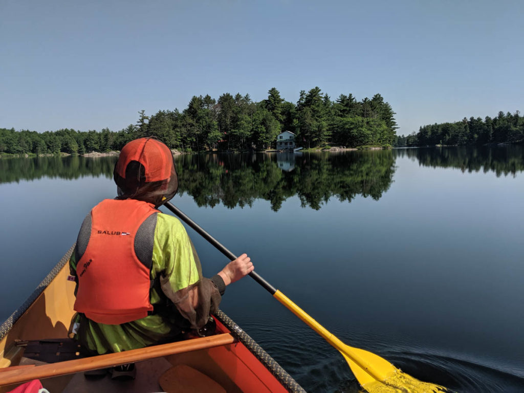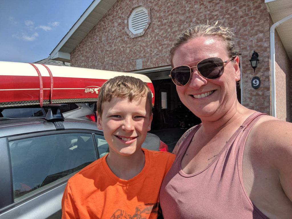 Having a little helper that I can boss around does have its perks. I would get Hayden to move items from inside the shelter to outside, help fold the tent, and take down the shelter. Then I quickly packed our bags and got the gear and canoe ready to go.