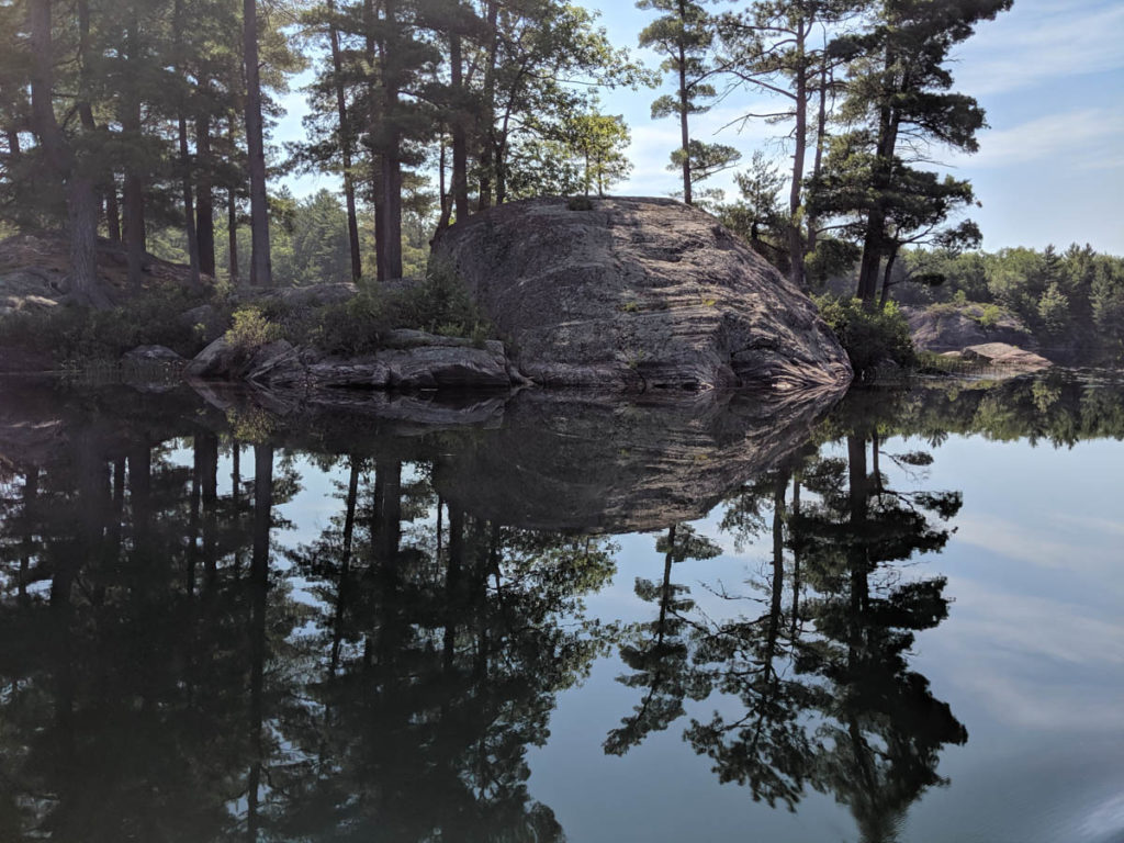 We made quick work of Buzzard to the portage and the views were amazing. We had a mirror lake the whole paddle to the portage. I find that I have been drawn more and more to the reflections made by the rocky shores and mirror lakes where if you turn your head sideways there are images that are so unique and interesting.