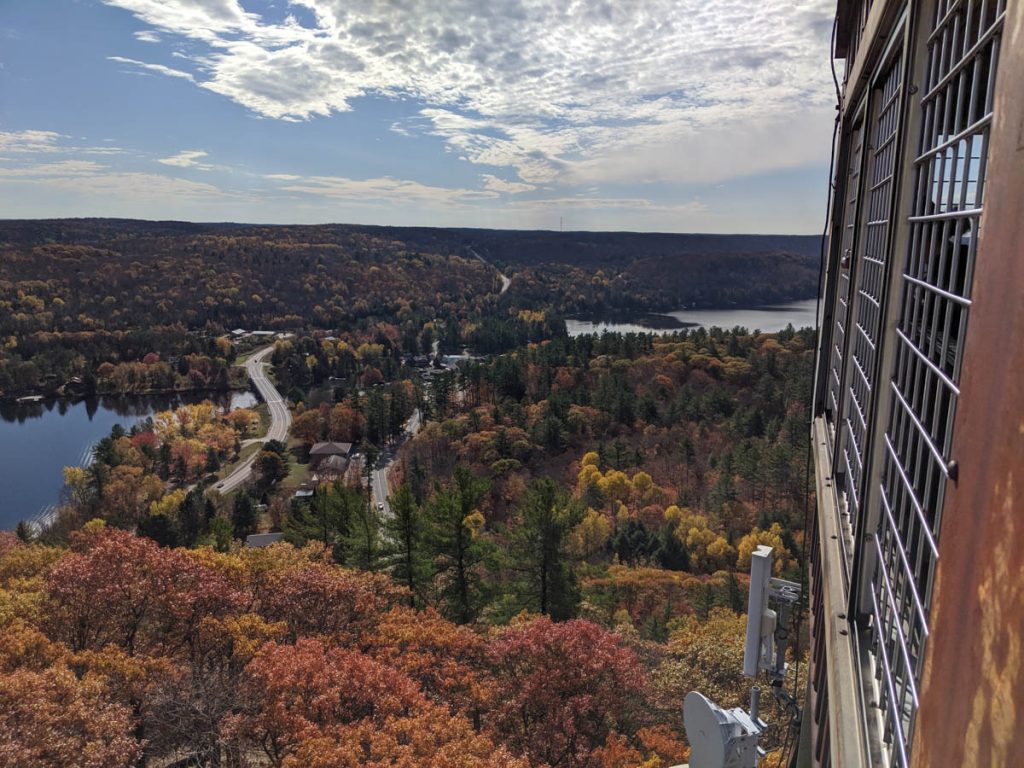 I immediately headed for the tower and climbed all the way up. It was just spectacular. The view from the tower is a full 360 and the forest below was littered with orange, red, and yellow trees.