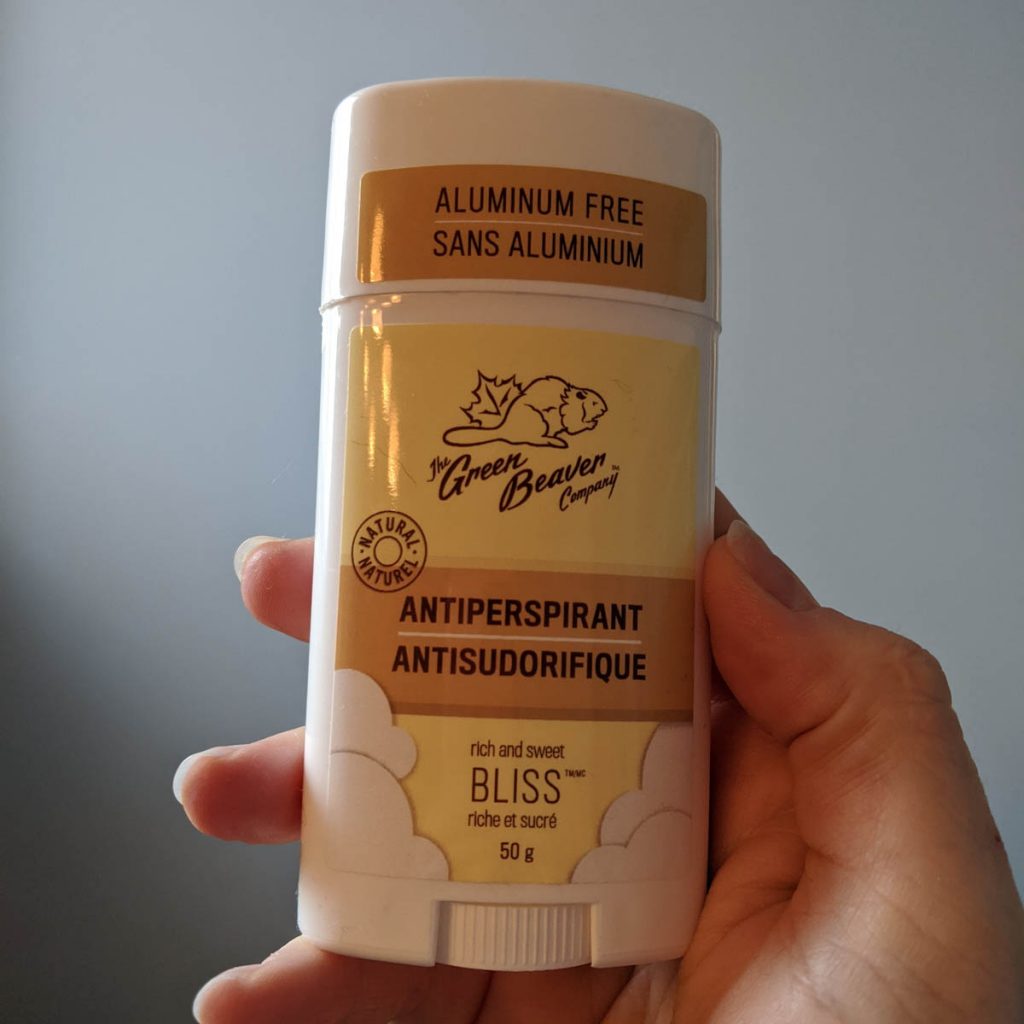 My first change was personal. I’ve been trying to find a natural product that I could use to replace my big store brand antiperspirant that would actually work with my body. I was also looking for something that was locally made here in Ontario or at least within Canada. In the past I have tried a few brands of natural deodorants, none of which have worked. When I finally realized that I may need an antiperspirant rather than a deodorant, I searched some more and finally found a product by the Green Beaver Company. It is naturally made, has no aluminum, and is made locally.