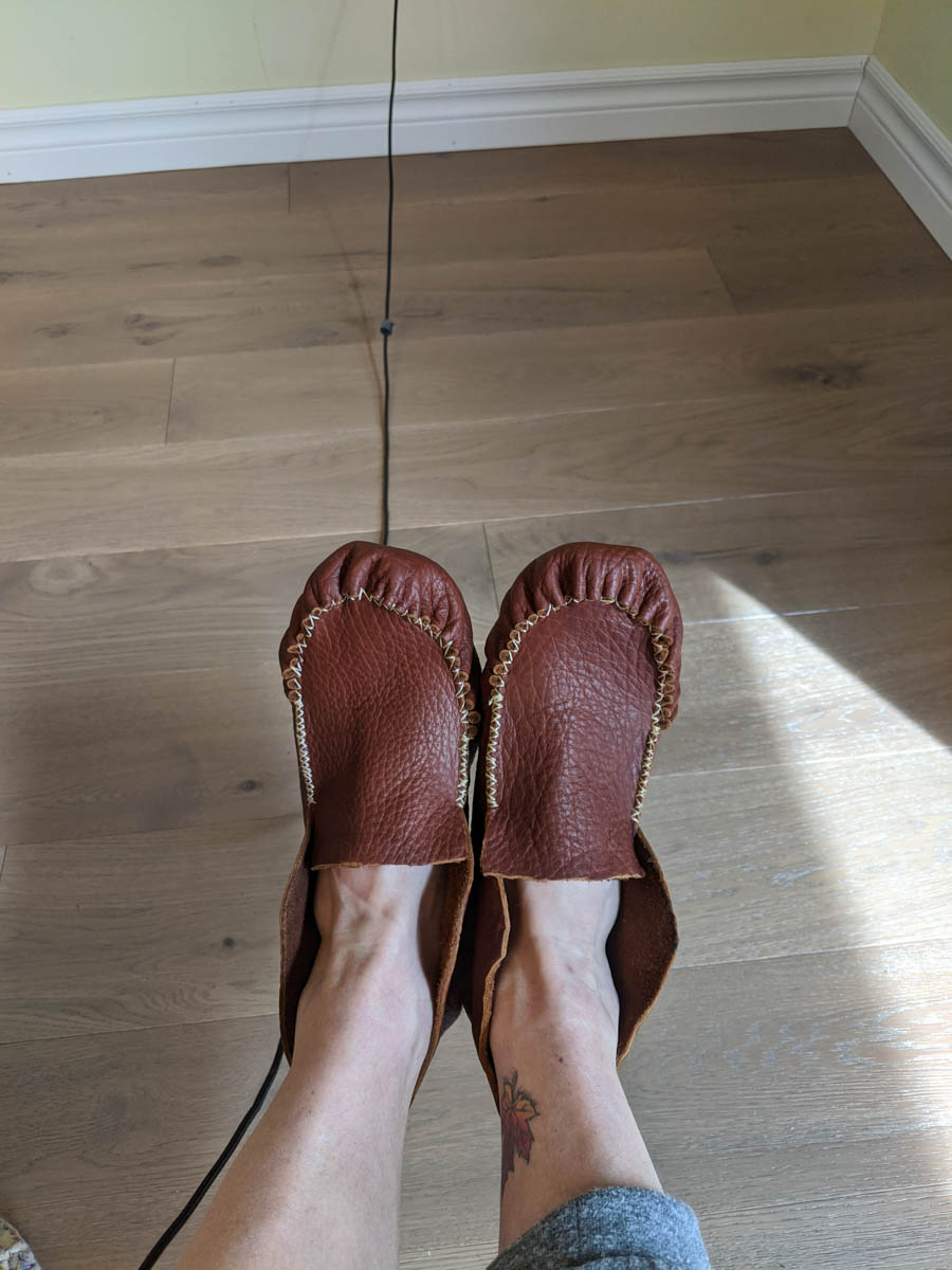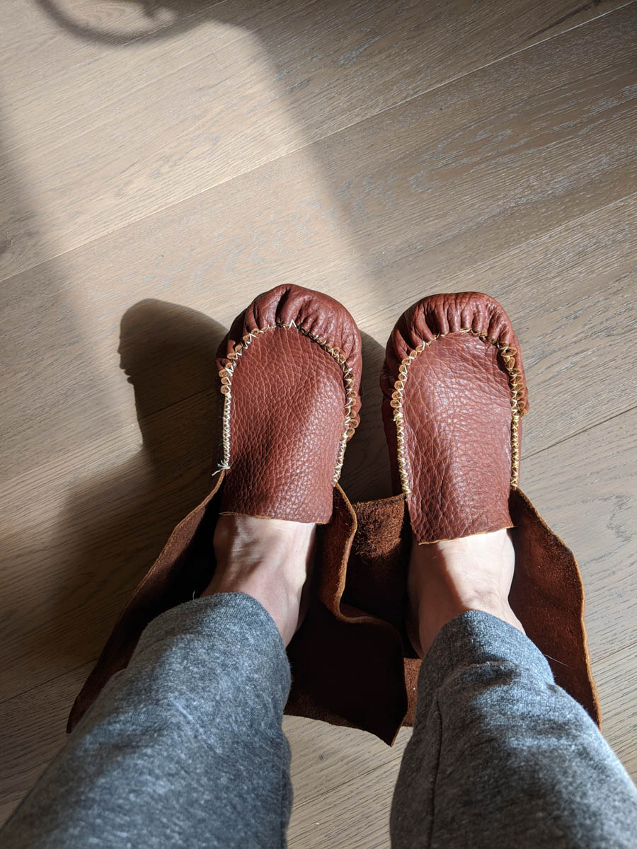 There is a rubber sole kit that will need to be added to my moccasins, however, this kit involved some really smelly glue, so I will be waiting until the weather warms up enough to do that work.