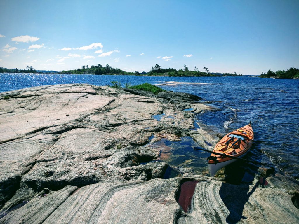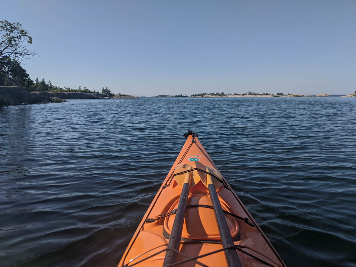It was time to leave our home so we packed up our gear, the kayaks and started our 13 km paddle back to the marina. We were on the water just before 9 am with calm water and clear skies. I was really glad to be paddling home in the calmer weather as it gave me a chance to really enjoy all my surroundings of Georgian Bay.